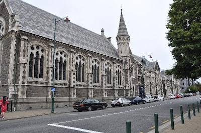 Karen and I walked around the quaint town. In the Cathedral Square, we saw the Christchurch's iconic cone-shaped art piece (me next to it above)... I had to look up what it was called; this quote is from Wikipedia: "Since the year 2000, The Chalice, a large piece of modern sculpture in the form of an inverted cone, has stood in the square subverting the shape of the spire that rises above the cathedral. The Chalice, designed by prominent New Zealand artist Neil Dawson, is made up of forty-two leaf patterns featuring different native plants."